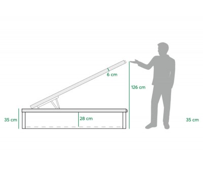 El canapé tapizado Comfort 3D tiene un diseño abatible y moderno que permite organizar su almacenaje fácilmente, el somier es metálico con pata de madera maciza acabada a juego de su costado con tirador, ideal para todo tipo de ambientes.