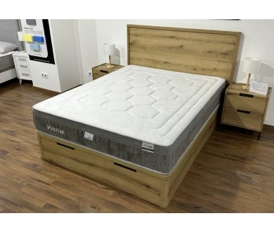 Colchón con núcleo de goma HR de 28kgs de 20cm de grosor, con cama Gel Therm de 3cm y visco elástica de 50kgs, cuenta además con un refuerzo perimetral de goma HR de 40kgs dura para poder usar el 100% del colchón sin sensación de caída y poderse sentar en los bordes sin hundimiento excesivo.