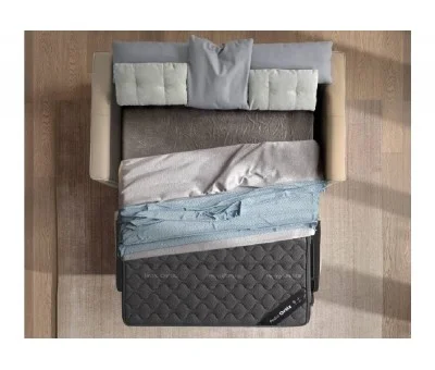 Sofá cama con patas altas y sistema italiano de apertura.
