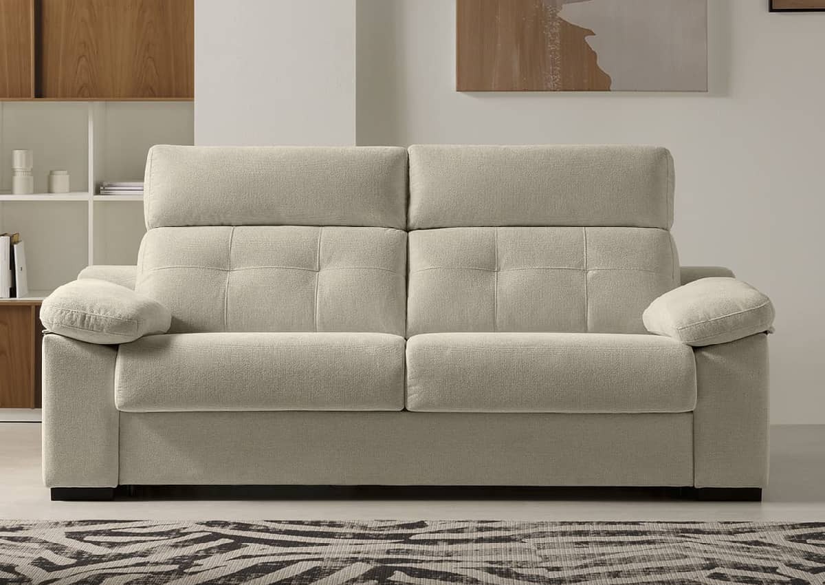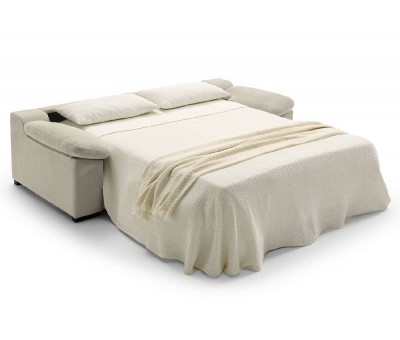 Modelo de sofá cama con respaldo ergonómico, brazos acolchados, mecanismo italiano de apertura.