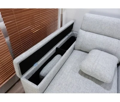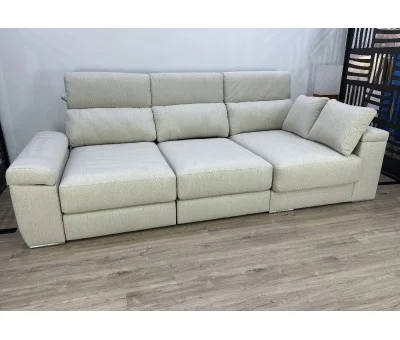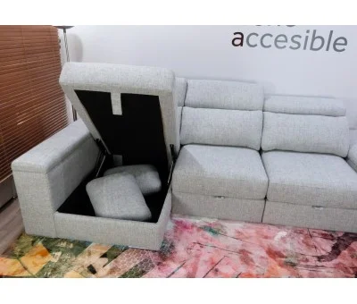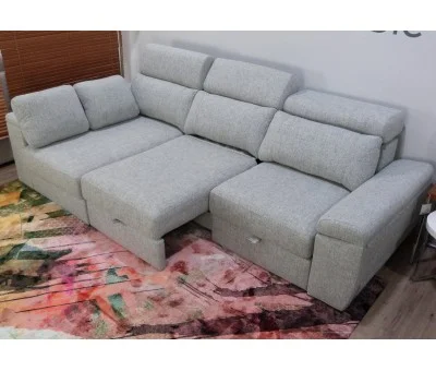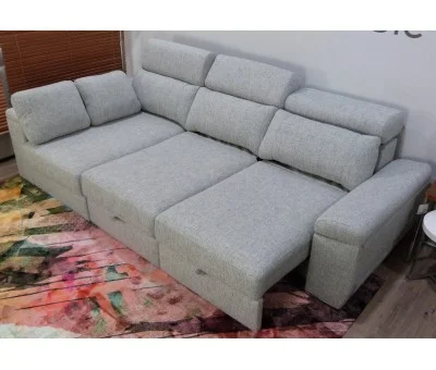 Sofá con asientos deslizantes carro con apoyo en el suelo que deslizante a la altura de la chaiselongue, dejando un hueco amplísimo que se puede usar incluso para dormir comodamente.