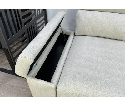Disponible con varías medidas de asiento, y cuenta con brazos arcón, y el brazo del sofá acompaña el movimiento del asiento deslizante.