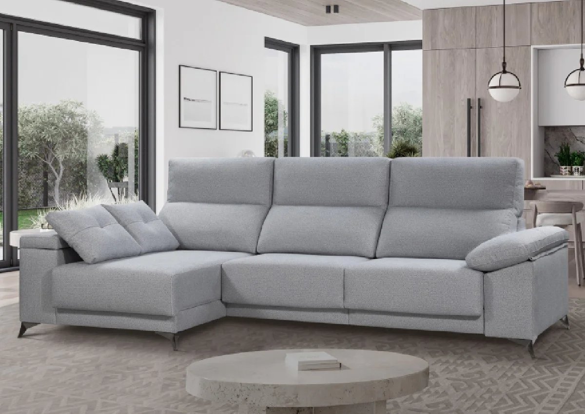 Diseño moderno y ergonómico con patas altas y cabezales reclinables.