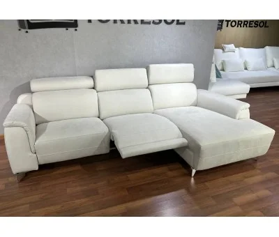 El modelo Ralph de Sofás Torresol es un relax eléctrico con sentada ergonómica, cuenta con la para trasera unos centímetros más baja que la delantera, consiguiendo una sentada muy cómoda, lo notamos sobre todo al extender el mecanismo al quedar los pies por encima de la cadera.