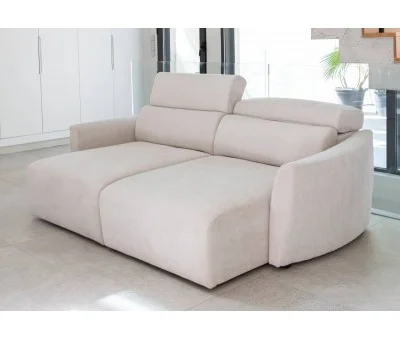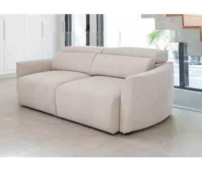 El modelo Noemi es el primer sofá de Fama con asientos deslizantes carro manuales, tiene un diseño moderno gracias a sus cabezales abatibles de carraca, líneas rectas y brazos con una ligera curva.