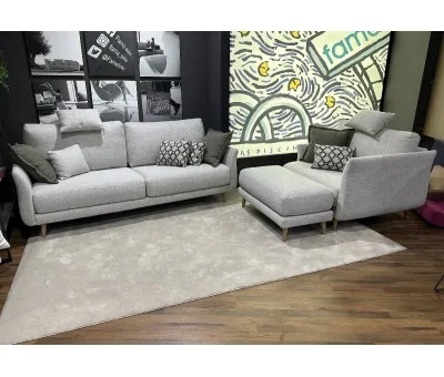 Moderno diseño para este sofá de líneas nórdicas, con brazos estrechos, altos o bajos y patas altas de madera en distintos colores, opciones de composiciones modulares, rincón y chaise longue.