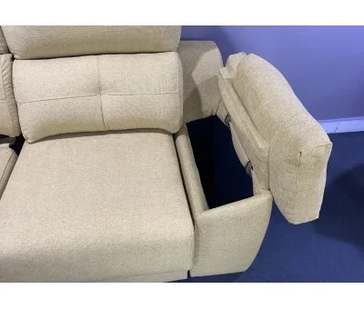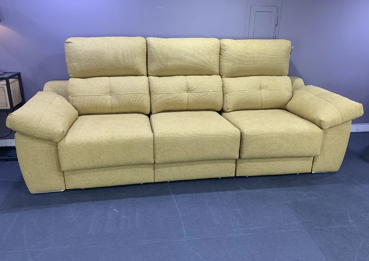 El modelo Jaguar en modulación de sofá recto, con 3 asientos deslizante carro y ambos brazos arcón.