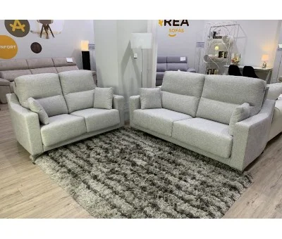 Modelo de sofá de líneas atemporales, con patas altas disponibles en diferentes acabados de madera y metal, varías tapicerías a elegir. Modulación de sofá, rinconera y chaise longue.