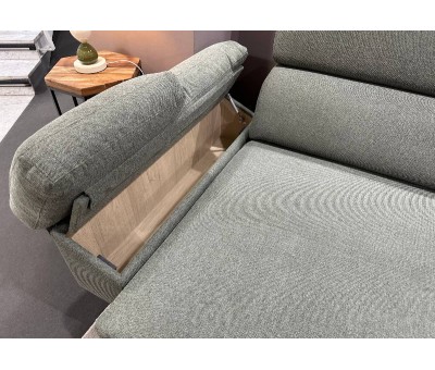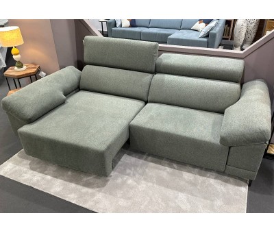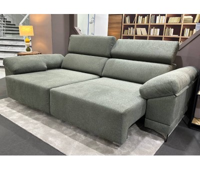 El modelo Tokio es un sofá deslizante carro de líneas modernas, con cabezales abatibles, patas metálicas altas y brazos siesta con arcón.